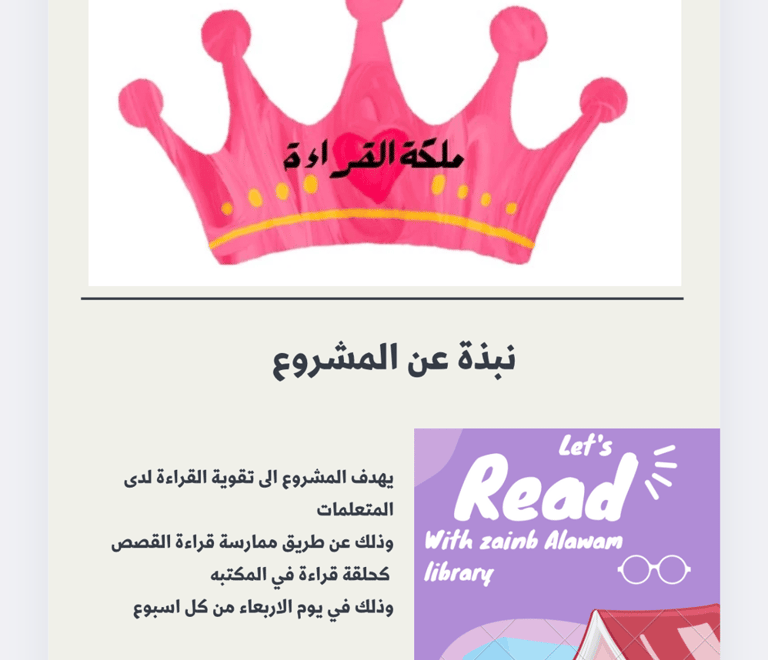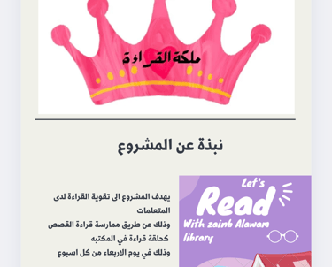 يهدف هذا المشروع الى تقوية القراءه لدى المتعلمات.
